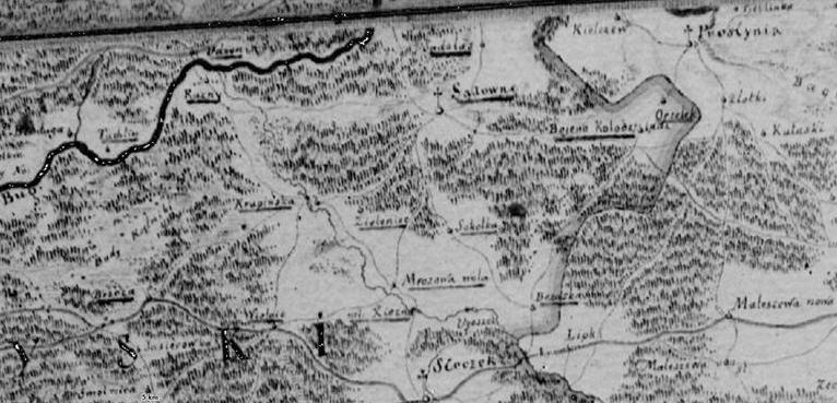 Następną wsią był Zieleniec, który odziedziczył nazwę lasu, na miejscu którego powstał. Wieś ta wymieniona została po raz pierwszy w 1552 r. W tymże roku istniała już i Sokółka. Datę powstania obu tych wsi należy cofnąć przynajmniej o lat dwadzieścia. Obie one znalazły się w 1552 r. w wykazach podatku łanowego, tzw. rejestrach poborowych. Ponieważ podatki zaczęto pobierać dopiero wtedy, gdy wygasły lata „woli”, a zazwyczaj trwało to najmniej lat 20, włóki dla Zieleńca i Sokółki wymierzono gdzieś około 1530r. W 1563r. zjawia się w rejestrze poborowym Brzózka, nazywana niekiedy także Brzozą. Jej początki datują się zapewne około 1540 r. … Wieś królewską Grabiny po raz pierwszy spotykamy w wykazie podatków z 1579 r., powstała zapewne przed rokiem 1560. Że osadnicy Dobroszewa – Grabin (Niemcowej Woli) korzystali z lat „woli”, zaświadcza nam zapiska w lustracji z roku 1570.