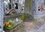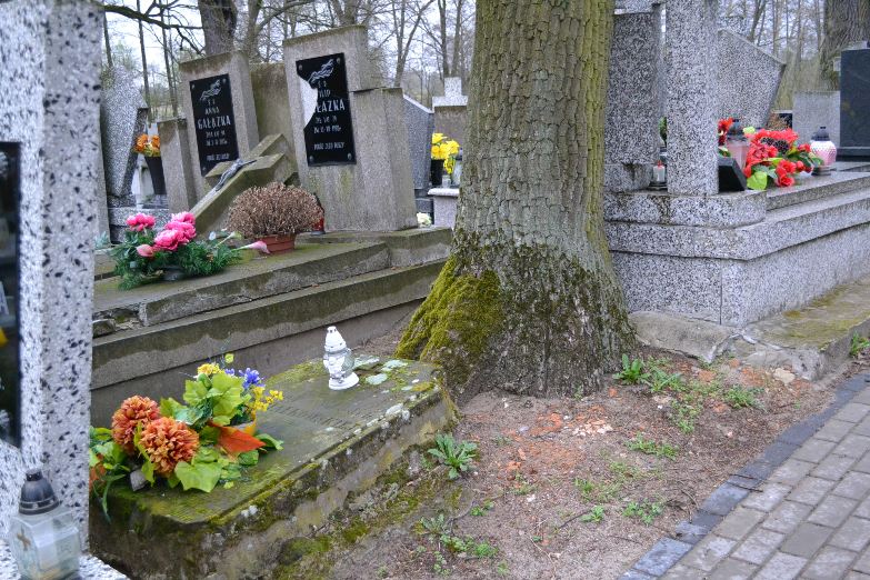 Zwróćmy na niego uwagę. Wchodząc główną bramą cmentarną musimy iść na wprost, gdzie przed szczytem wzniesienia, po lewej stronie alejki, pokaźny dąb strzeże niepozornego nagrobka – prawdopodobnie od chwili jego powstania.