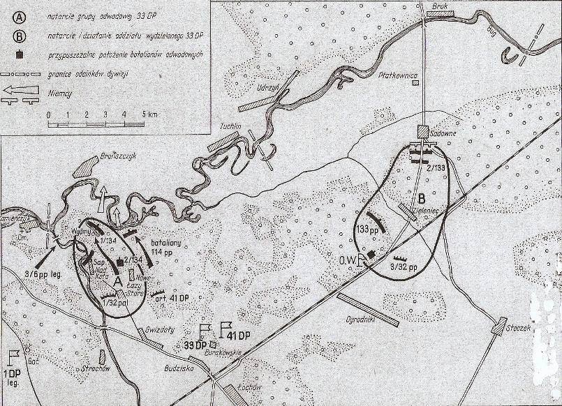 Dowódca 33. Dywizji Piechoty Rezerwy, płk Zieleniewski, doprowadził swoje oddziały do porządku po nocnych walkach z 6 na 7 września w drodze z nad Narwi pod Wyszków. Będąc już na lewym brzegu Bugu, skierował 133. pułk piechoty dowodzony przez płka Antoniego Wandtke pod Brok, aby zabezpieczać przejście przez rzekę, gdyż spodziewał się nieprzyjaciela od strony Ostrowi Mazowieckiej. Jednak most w Broku został wysadzony dwa dni przed nadejściem nieprzyjaciela.