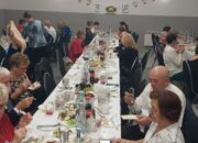 Na urodzinach nie mogło zabraknąć tortu, w tym przypadku pokaźnego, którego mogli skosztować wszyscy uczestnicy spotkania. Już na luzie, za stołami można było powspominać wydarzenia związane z Klubem, ale też o planach na przyszłość. Jak na prawdziwej biesiadzie, była lampka wina i smaczne potrawy. Czas umilił występ Zespołu „Sadowianki”, prezentujący utwory, które przyniosły mu zwycięstwo w kategorii zespołów folklorystycznych podczas ostatniego Przeglądu Twórczości Artystycznej Seniorów „Barwy Jesieni” w Węgrowie.
