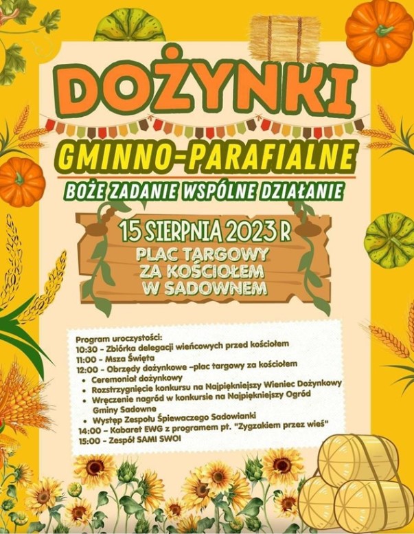 15 sierpnia 2023 r. w Sadownem po raz dziewiąty odbyły się Dożynki Gminno – Parafialne.