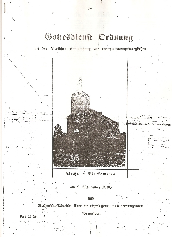 W roku 1909 wybudowali na miejscu drewnianego kościół murowany, a połowę budynku drewnianego przeznaczyli na szkołę, drugą zaś część na dom ludowy, który w roku 1915 sprzedali na rozbiórkę. Obok kościoła wybudowali wówczas dom dla zakonnic ewangelickich tzw. „Diakonek”. Zakonnice te pracowały w Warszawie w szpitalu ewangelickim, zaś do Płatkownicy przyjeżdżały na wypoczynek w okresie wiosenno – letnim. Zajmowały się one podczas swego tu pobytu leczeniem miejscowej ludności.