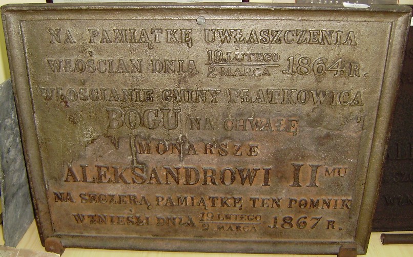 W roku 1864, kiedy car Aleksander II wydał ukaz o uwłaszczeniu, ziemie te przeszły na własność kolonistów niemieckich. Z wdzięczności za to Niemcy z Płatkownicy i Sojkówka wystawili w Sojkówku pomnik ku czci cara i wmurowali w niego tablicę z napisem:
