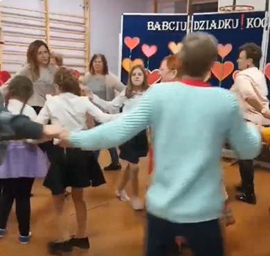 W tanecznym korowodzie nastąpiło połączenie kilku pokoleń. Babcie, dziadkowie, rodzice, wnuczęta, no i my – oczywiście też babcie i dziadkowie.