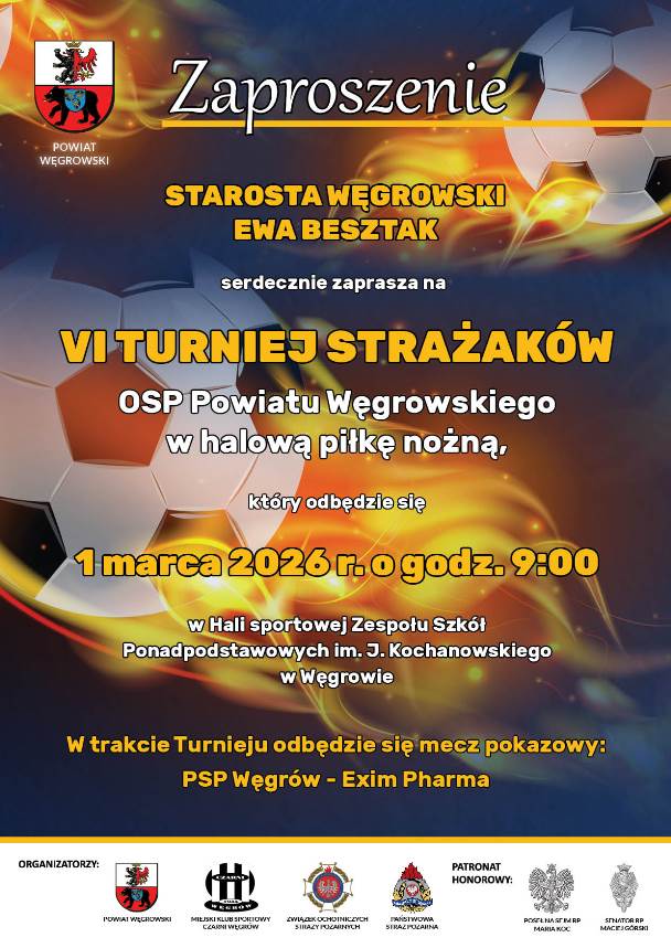 Starosta Węgrowski Ewa Besztak zaprasza na Turniej Strażaków OSP oraz na Koncert z okazji Dnia Kobiet i Dnia Sołtysa.