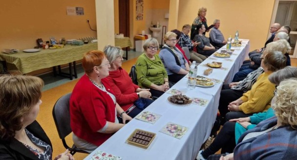 W poczęstunku znalazł się pyszny tort oraz życzenia z okazji zbliżającego się Dnia Kobiet. Nie zabrakło też toastów i wspólnego śpiewu.