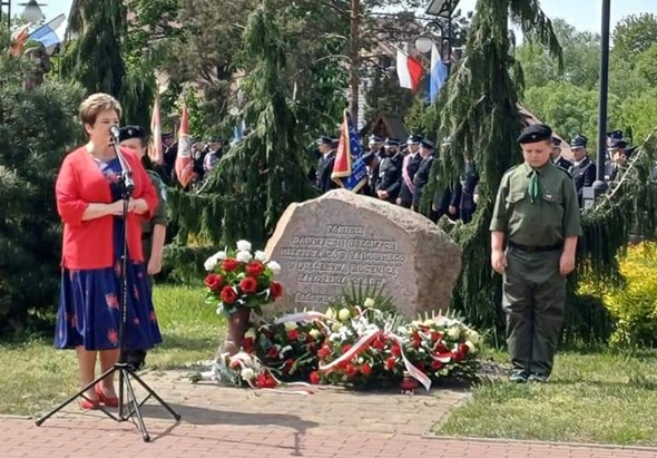 Po mszy świętej sprawowanej w intencji Ojczyzny oraz strażaków zgromadziliśmy się przy Kamieniu Pamięci Mieszkańców Sadownego, gdzie poszczególne delegacje złożyły w hołdzie kwiaty oraz odbyły się przemówienia zaproszonych gości. Uroczystość prowadziła p. Ewa Piórkowska – Dyrektor Gminnego Ośrodka Kultury w Sadownem.