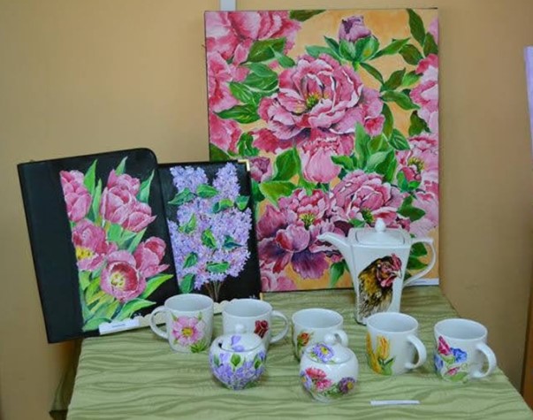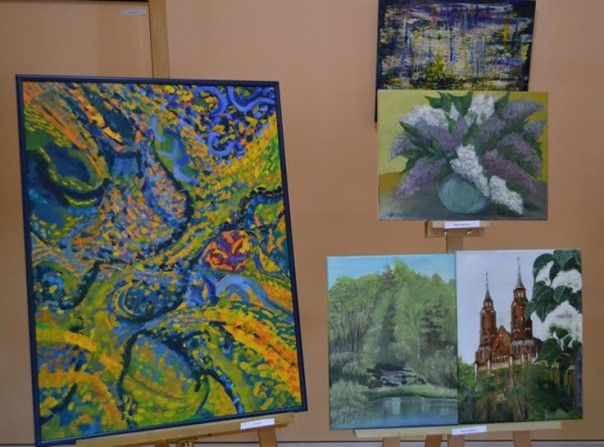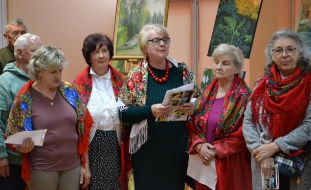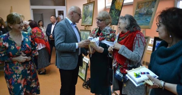 Zespół Śpiewaczy „Sadowianki” od wielu lat utrzymuje kontakt z artystami malarzami, podziwia ich wspaniałą twórczość, dlatego zawsze jest obecny na wernisażu poplenerowym. W tym roku tak się złożyło, że część z nas rozłożyła choroba, więc „Sadowianki” reprezentowało tylko kilkoro z nas, nawet bez akordeonisty Andrzeja Oltona.