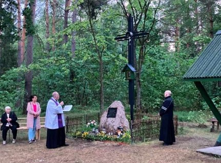 Następnie proboszcz parafii Sadowne ks. Antoni Kunicki przedstawił zebranym krótki życiorys bł. ks. Edwarda Grzymały. Zwrócił również uwagę na nowy metalowy krzyż stojący obok pamiątkowego głazu.
