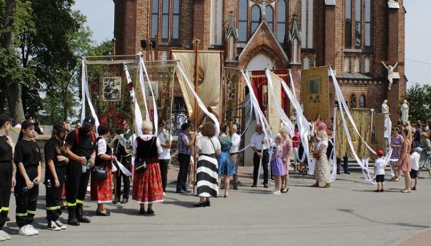 Wieczornemu nabożeństwu towarzyszył ponad 100-letni obraz Matki Bożej Częstochowskiej umieszczony na pomnikowym dębie.