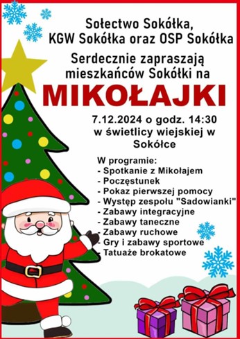 W świetlicy wiejskiej w Sokółce licznie zebrali się mieszkańcy tej miejscowości na tzw. Mikołajki. W programie było wiele atrakcji dla dzieci i dla dorosłych.