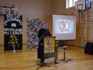 Z kolei głos zabrali prelegenci – ks. dr Zenon Czumaj oraz dr hab. Wanda Decyk – Zięba (absolwentka LO w Sadownem, wykładowca na UW). Ks. dr Zenon Czumaj, opierając się na niepublikowanych materiałach źródłowych, przedstawił bardzo interesujący wykład dotyczący początków osady Sadowne. Dr hab. Wanda Decyk – Zięba zajęła się w swoim wystąpieniu pochodzeniem nazwy Sadowne oraz strukturą występowania imion w księgach parafialnych w Sadownem.