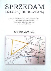 Sprzedam niezabudowaną działkę budowlaną położoną w obrębie wsi Ocięte w gminie Sadowne.
