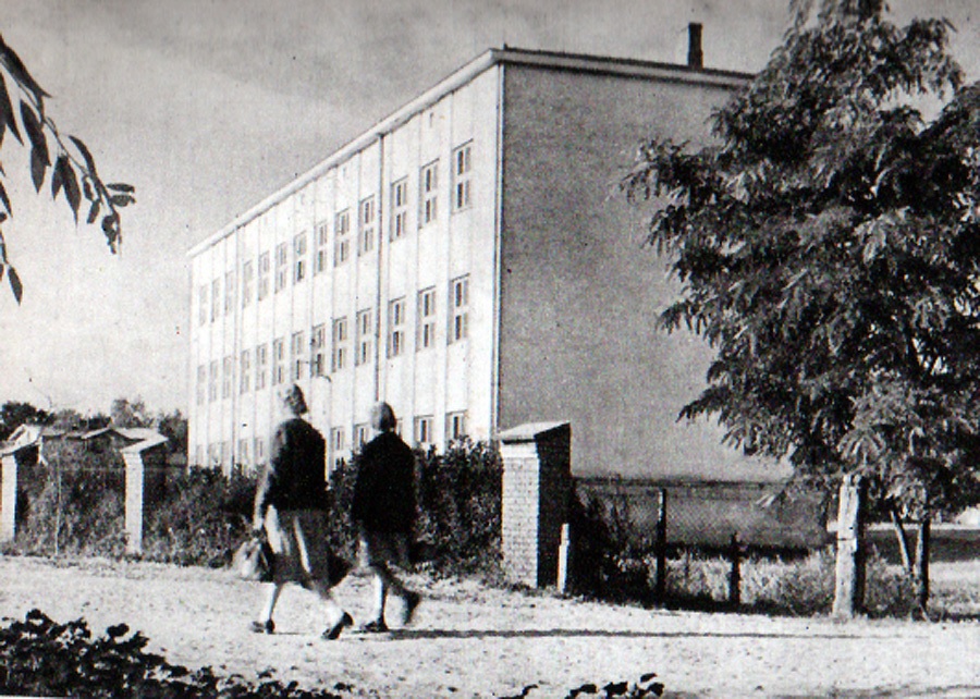 16 września 1955r. dyrektor szkoły Helena Puścion dokonała złożenia kamienia węgielnego w narożnym fundamencie nowego budynku od strony północno-wschodniej. Wśród wielu trudności, kłopotów i przeszkód organizacyjnych, nie przerywając ani na chwilę zajęć szkolnych, prace budowlane trwały ponad 2,5 roku, aż do 7.09.1957r.