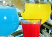 Składniki: po 40 ml soku z pomarańczy, grejpfruta, ananasowego i cytrynowego, 2 łyżki syropu z malin, szklanka zmrożonej wody sodowej, nabite na szpadki owoce: 2 wisienki koktajlowe, plasterek ananasa i pomarańczy.