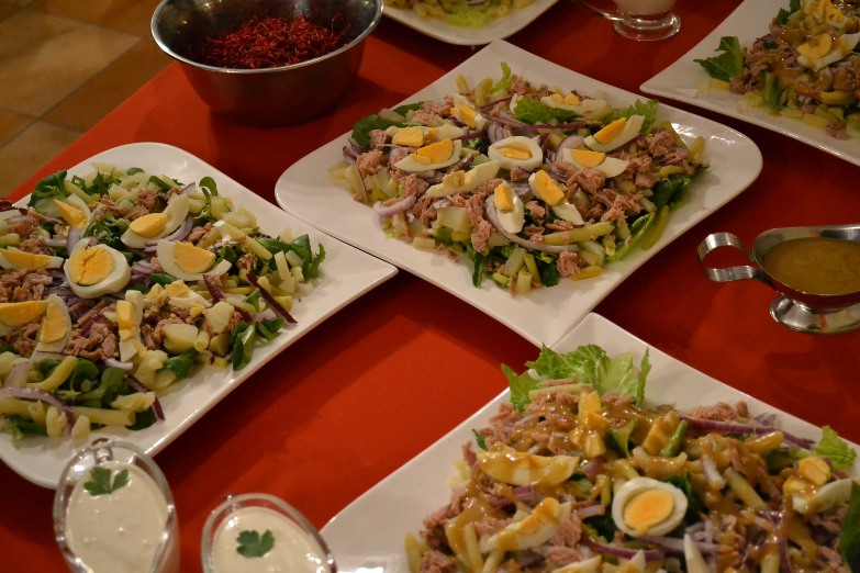 Podczas kulinarnego spotkania grupy członków Sadowieńskiego Klubu Seniora wykonywano samodzielnie różnego rodzaju sałatki. Przepisy dostarczyły Panie z Technikum Żywienia i Usług Gastronomicznych, a nasze kubki smakowe zmusiły do poproszenia o te przepisy, wg których możemy je przygotowywać w domach. Oto one: