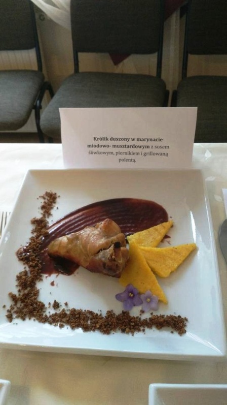 II miejsce – Dorota Wieliczko i Szymon Dąbrowski – Królik duszony w marynacie miodowo -musztardowej z sosem śliwkowym, piernikiem i grillowaną polentą.