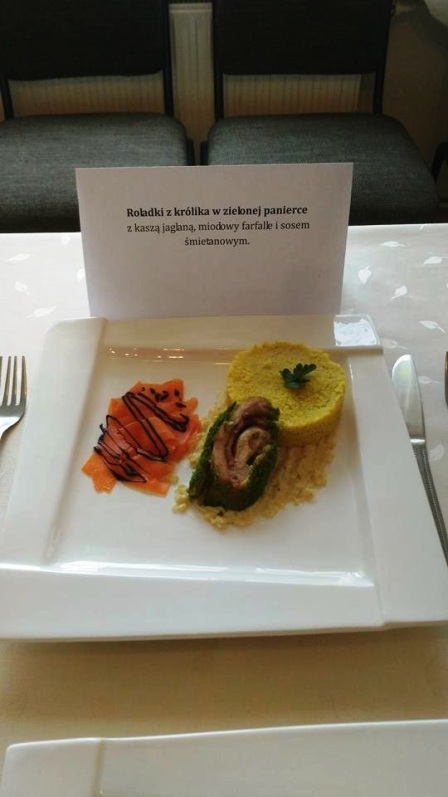 oraz Ewelina Wróbel i Agata Karczmarczyk – Roladki z królika w zielonej panierce z kaszą jaglaną, miodowym farfalle i sosem śmietanowym.