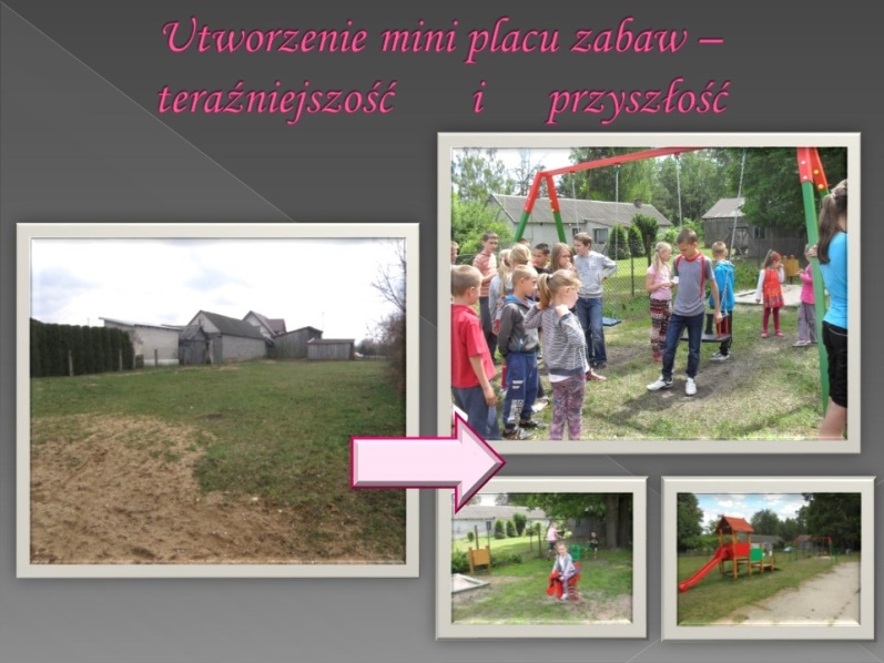 Wierzymy, że jeżeli mieszkańcy zaangażują się czynnie w powstanie placu zabaw, to będą w przyszłości poczuwali się do obowiązku dbania o to dobro. Będziemy przykładem dla innych wiosek, że wspólnymi siłami wszystko można osiągnąć.