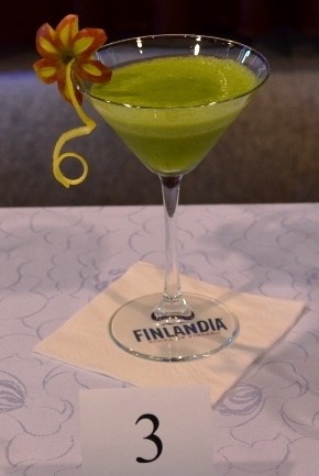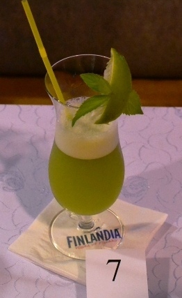 Składniki: sok jabłkowy, syrop mojito, sok z limonki, sok z ananasa, mięta. Technika miksowania: blenderowanie. Naczynie: hurricane. Dekoracja: cytryna, limonka.
