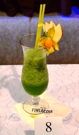 Składniki: szpinak, ogórek zielony, jabłko, imbir, napój bezalkoholowy gazowany sprite. Technika miksowania: blenderowanie, top sprite. Naczynie: kieliszek koktajlowy. Dekoracja: jabłko, skórka z cytryny.