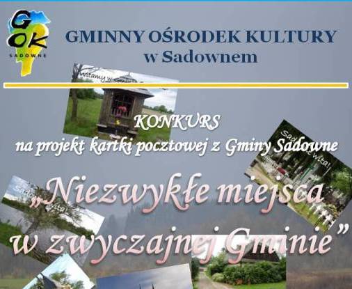W kwietniu br. Gminny Ośrodek Kultury w Sadownem ogłosił otwarty konkurs na projekt kartki pocztowej z Gminy Sadowne pn. „Niezwykłe miejsca w zwyczajnej Gminie”.