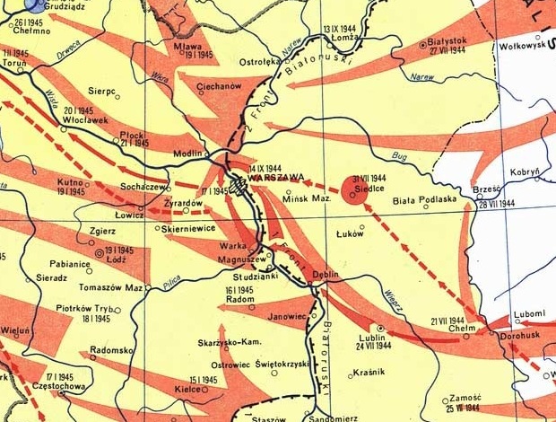 Na niemieckie linie obronne wzdłuż dolnych odcinków Narwi i Bugu nacierał I Front Białoruski pod dowództwem marszałka Konstantego Rokossowskiego. W skład tego Frontu wchodziły m.in. 48. i 65. Armia.
