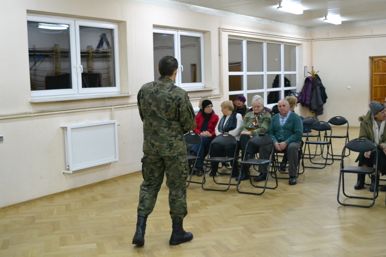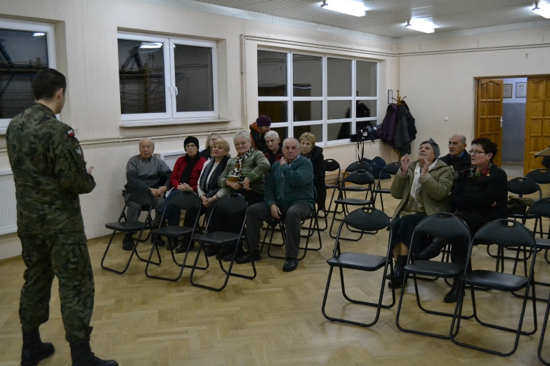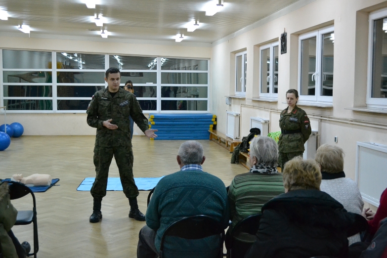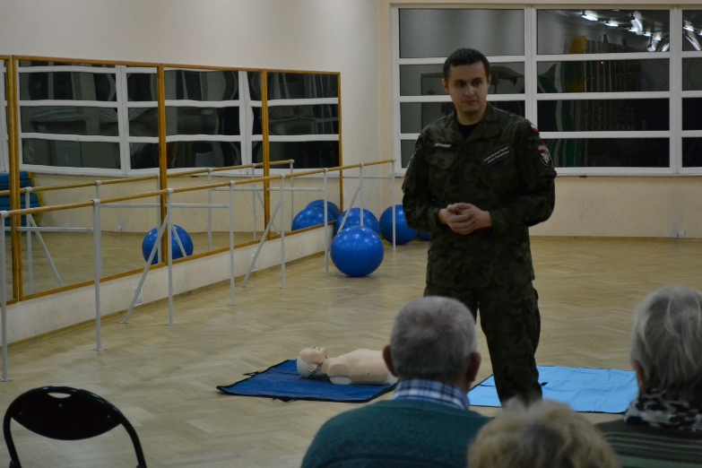 Zajęcia poprowadził Dowódca Jednostki Strzeleckiej im. Dywizjonu Huzarów Śmierci st. sierż. Michał Józefowski, a asystowała mu strzelec Sylwia Jóźwik. Seniorzy chętnie przystąpili do nauki udzielania pierwszej pomocy, w tym m.in. pobudzania krążenia i zastosowania sztucznego oddychania – oczywiście wykorzystując do tego celu fantoma. Była też ożywiona i pouczająca dyskusja na temat występujących lokalnie zagrożeń.