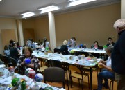 Uczestnicy zajęć dopisali i popołudniem 15 grudnia w Muzealnej Izbie Edukacji Etnograficznej, która mieści się w GOK-u, stawiło się prawie trzydzieści osób chętnych nabycia umiejętności tworzenia bombek na ukształtowanym materiale styropianowym.