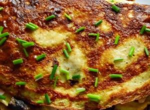 1/3 szklanki (80 ml) mleka spożywczego 2 % tłuszczu, 1 jajo kurze, 4 łyżki mąki żytniej typ 2000 (48 g), 1 kiwi, 1 łyżeczka oleju rzepakowego uniwersalnego, 1 łyżeczka ksylitolu (niekoniecznie; jeżeli szpinak zamiast kiwi, to świeży; można też czosnek, cebulę, masło i śmietanę lub jogurt naturalny)