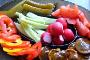 Jarzyny – chudy sos winegret przygotowujemy z 2 łyżek oleju, połowy szklanki wody, cukru i soku cytrynowego oraz ziół. Do tartej marchewki zamiast śmietany dodajemy jogurt naturalny. Warzywa gotowane świetnie smakują bez ciężkiej zasmażki. Dla wzbogacenia ich smaku przygotowujemy je na parze.