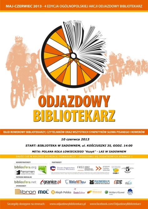 Biblioteka Publiczna w Sadownem również włączyła się w tę akcję i 10 czerwca organizuje lokalny rajd rowerowy dla wszystkich sympatyków słowa pisanego i rowerów. Początek – godz. 14.00, trasa: Gminna Biblioteka Publiczna – leśna polana Koła Łowieckiego „KSZYK”.