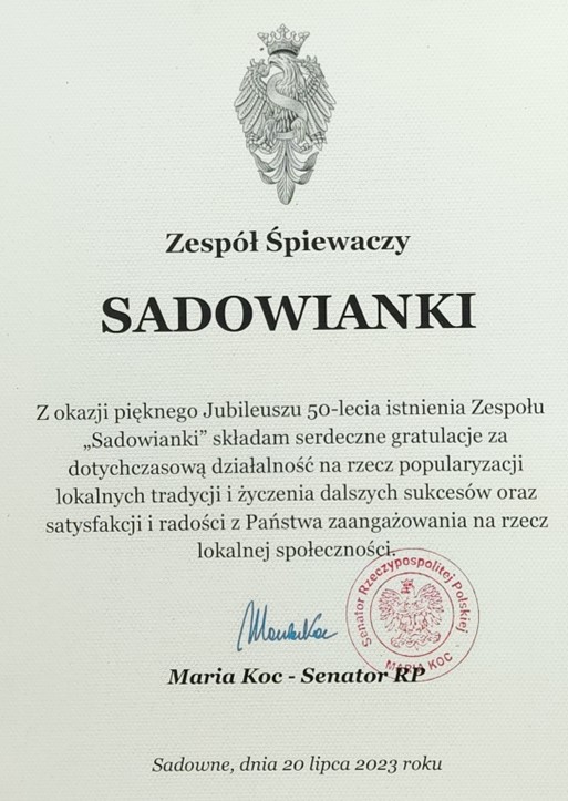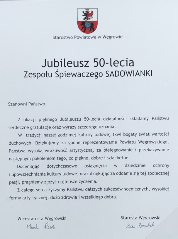 ,,Z okazji 50-lecia Zespołu Śpiewaczego Sadowianki