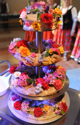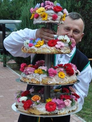 Wreszcie jak przystało na krzewienie tradycji ludowych i kulinarnych nie mogło zabraknąć tortu czteropiętrowego wykonanego w pracowni regionalnej P. Ryszarda Zawadzkiego.