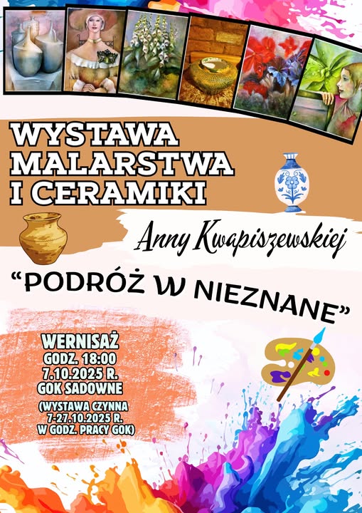 Gminny Ośrodek Kultury w Sadownem zaprasza na wystawę malarstwa i ceramiki Anny Kwapiszewskiej.