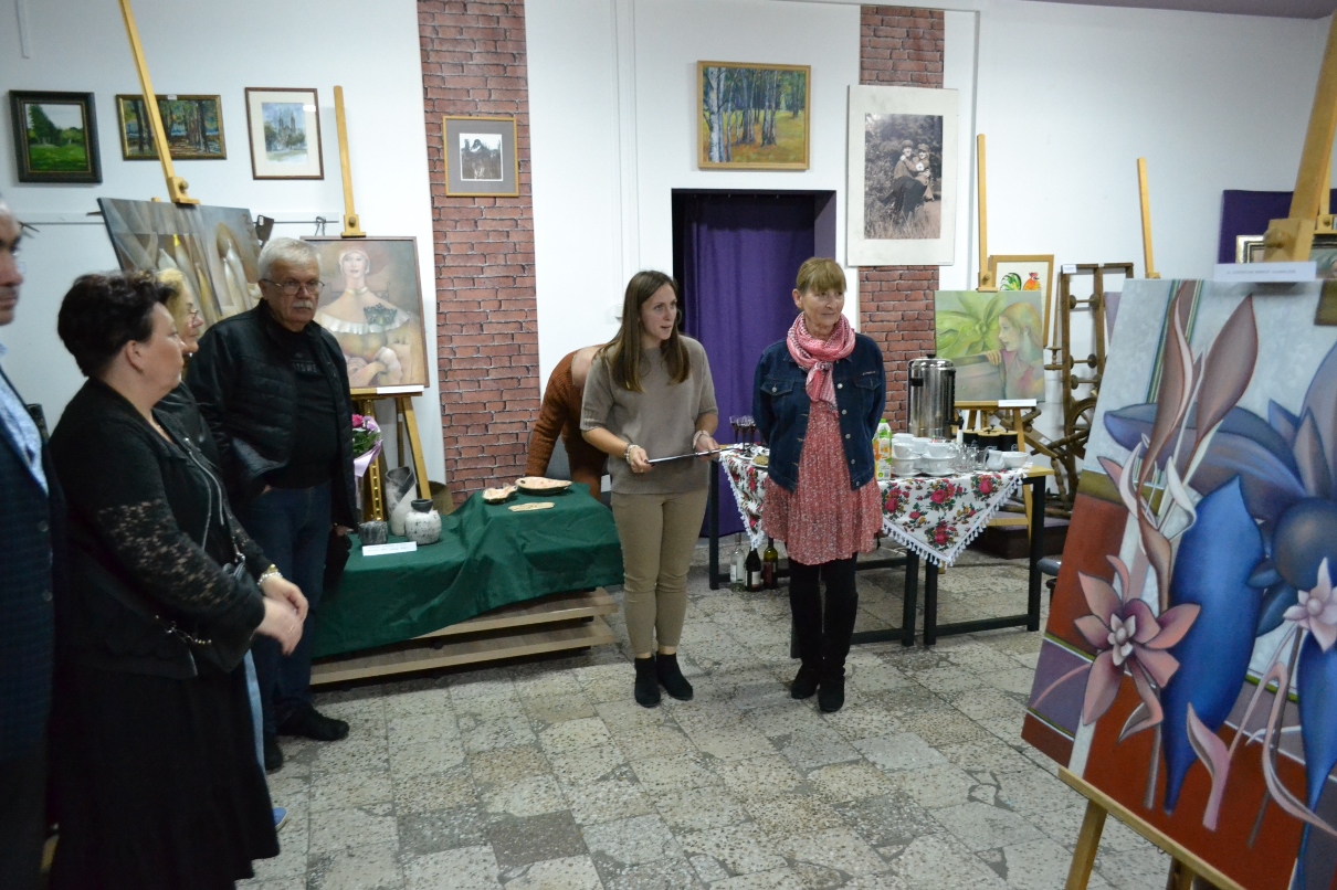 Późnym, wtorkowym popołudniem w sali muzealnej Gminnego Ośrodka Kultury w Sadownem zgromadziło się wielu miłośników twórczości artystycznej p. Anny Kwapiszewskiej, która zamieszkuje nieopodal Sadownego. Gości powitała i kilka słów o artystce przekazała p. Magda Zawadzka z Gminnego Ośrodka Kultury w Sadownem: P. Ania ukończyła Akademię Wychowania Fizycznego, ale oprócz zainteresowań sportowych zgodnych ze swoim zawodem, od wielu lat pasjonuje się ceramiką i malarstwem. W celu pogłębienia swojej wiedzy związanej z techniką i materiałami stosowanymi w ceramice, brała udział w szeregu warsztatach m.in. Monotypia, Sgraffito czy wypały japońską techniką Raku – od pewnego czasu w tej dziedzinie twórczości współpracuje też z Gminnym Ośrodkiem Kultury w Sadownem. Techniki malarskie doskonaliła na zajęciach u prof. Anny Sobol w Domu Kultury „KADR” w Warszawie. Od 2018 roku należy do Warszawskiego Stowarzyszenia Plastyków. Swoje prace prezentowała na wielu wystawach zbiorowych organizowanych przez Warszawskie Stowarzyszenie Plastyków oraz Okręg Warszawski Związku Polskich Artystów Plastyków. W 2019 roku miała indywidualną wystawę swoich prac w Domu Kultury „KADR” w Warszawie. W 2024 roku brała udział i zajęła pierwsze miejsce w XVIII Ogólnopolskim Konkursie Malarskim, organizowanym przez Centrum Kultury Raszyn, za pracę pt. „W blasku sceny”. W 2025 roku, w kolejnym już XIX Konkursie tego organizatora, zwyciężyła jej praca – obraz pt. „Wdzięk, styl, czar i szyk”.
