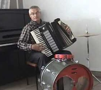 Po występach zostaliśmy zaproszeni na kawę i pyszną przekąskę. W trakcie poczęstunku usłyszeliśmy za oknem pierwsze dźwięki grane przez p. Tadeusza Kopaniarza z Małkini. Pan Tadeusz to taki trochę ,,Człowiek orkiestra”. Gra na akordeonie i jednocześnie na perkusji wystukuje rytm.