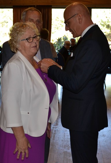 A tu nasza Ela z mężem Markiem – medal przypina p. Waldemar Cyran, legitymację wręcza p. Marcin Gręda