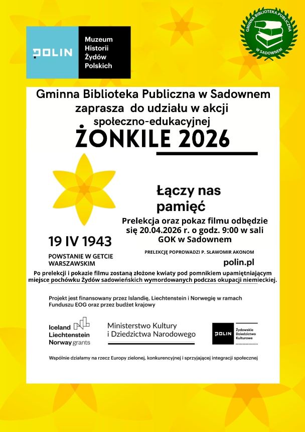 Gminna Biblioteka Publiczna w Sadownem zaprasza do udziału w akcji społeczno – edukacyjnej „Żonkile 2026”.