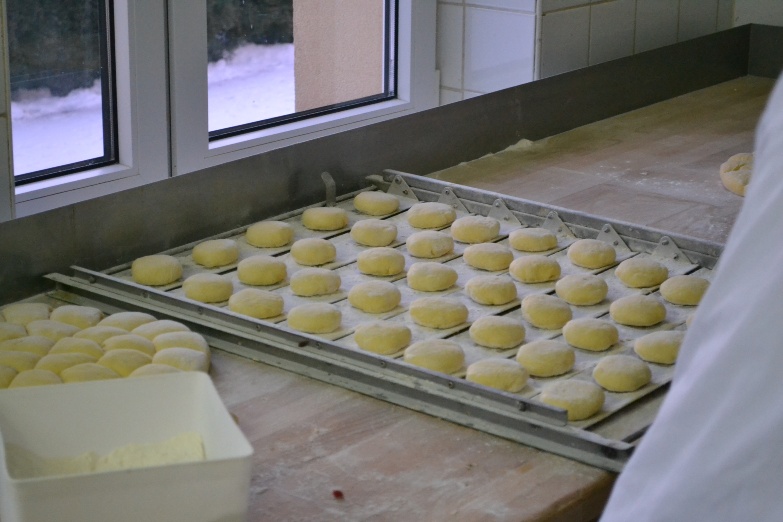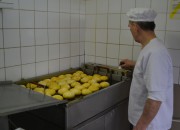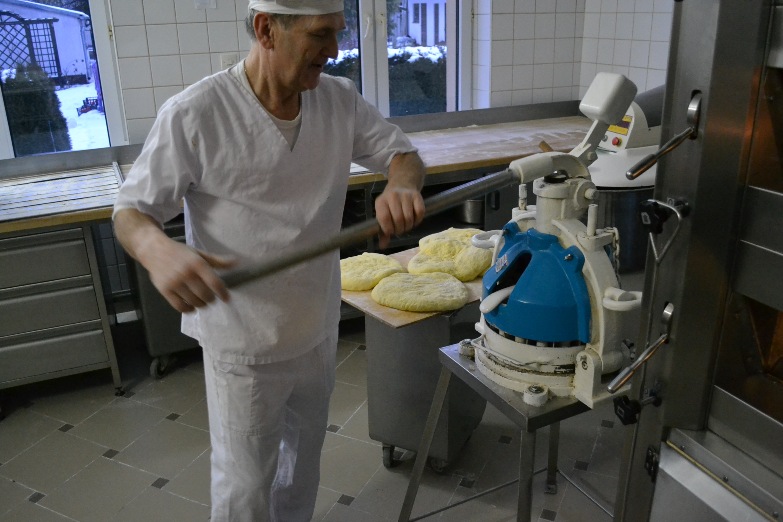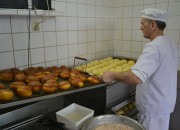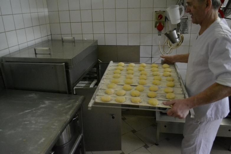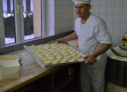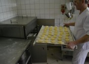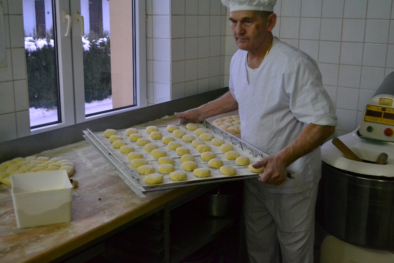 – Teraz proszę obserwować kolejność czynności. W mojej cukierni, w dalszym wykonaniu pączków, przy tak dużej ilości musimy posługiwać się urządzeniami, natomiast Państwo, we własnych domach, muszą wykonać te same czynności, ale ręcznie – tłumaczy p. Ryszard i przystępuje do pracy. Będziemy to komentować.