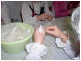 Zimą, kiedy wieczory były długie, kobiety spotykały się w wiejskich chatach i wykonywały różne prace: darły pierze, przędły na kołowrotkach, robiły skarpety i swetry na drutach. Był to ich sposób na pożyteczne spędzenie czasu. Jednocześnie miały okazję trochę pośpiewać, pożartować, poplotkować i porozmawiać o wszystkim, co się działo we wsi. Wzajemne pomaganie sobie w różnych sprawach było rzeczą normalną. To były naprawdę cenne chwile w życiu wiosek: integrowały społeczeństwo, ludzie –połączeni wspólną pracą- czuli się sobie bliżsi. Bywało, że taki właśnie wieczór stawał się okazją do pocieszenia kogoś w troskach lub – co zdarzało się dość często – do zeswatania dwojga młodych ludzi. Dzięki temu zajęciu nikt nie był samotny, a i praca szła żwawiej. Kończono skubać w jednym domu, a już następnego wieczora zaczynano w następnym.