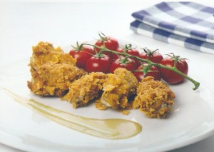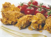 Skrzydełka myjemy i kroimy na połówki, na wysokości stawu. Następnie – przez minimum 3 godziny – marynujemy je w słodkiej i ostrej papryce, soli, oleju, soku z cytryny i wyciśniętym przez praskę czosnku. Po zamarynowaniu skrzydełka panierujemy – kolejno – w mące, rozmąconym jajku i lekko pokruszonych płatkach kukurydzianych. Zapanierowane skrzydełka smażymy na złoto na patelni (po obsmażeniu można je grillować).