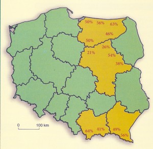 Badania w latach 2001 – 2008 wykazały powszechne występowanie bąblowca u lisów w woj. warmińsko-mazurskim (średnio ok. 40% zarażonych), podkarpackim (37%), mazowieckim (14%) i małopolskim (20%).